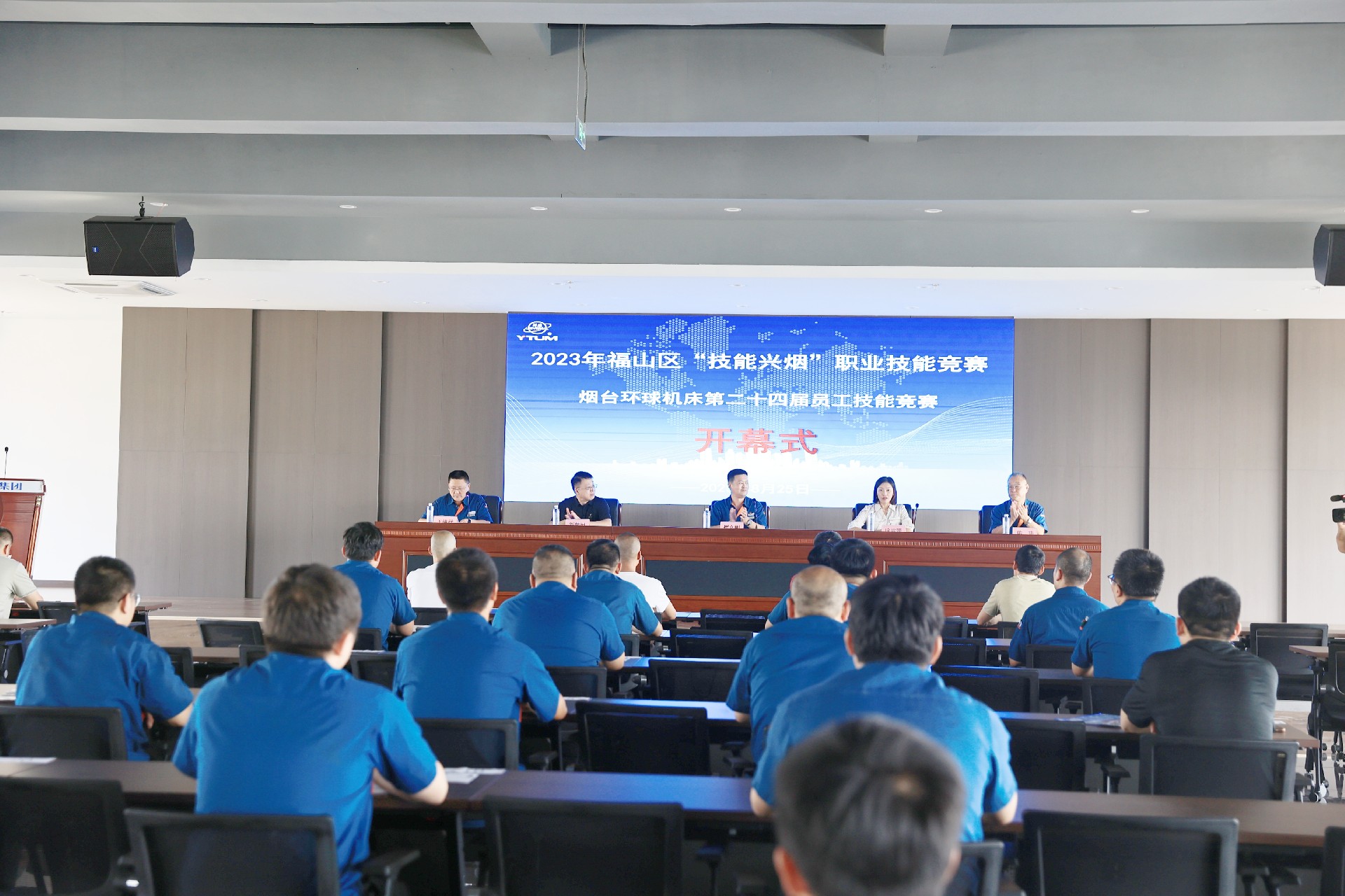 2023年8月25日,福山區“技能興煙”職業技能競賽暨煙臺環球機床裝備股份有限公司第二十四屆員工技能競賽于福潭路廠區4樓報告廳開幕。本次競賽最終舉辦的工種為鉗工,共5家企業,24位選手報名參賽,福山區人社局黨組成員、副局長徐雯斐,福山區總工會黨組成員、副主席劉榮田,公司黨委書記、常務副總經理崔文剛,工會主席陳瑋,企業管理中心副主任王德祥出席本次開幕式。開幕式后,參賽選手進行了緊張的理論考試作答。
