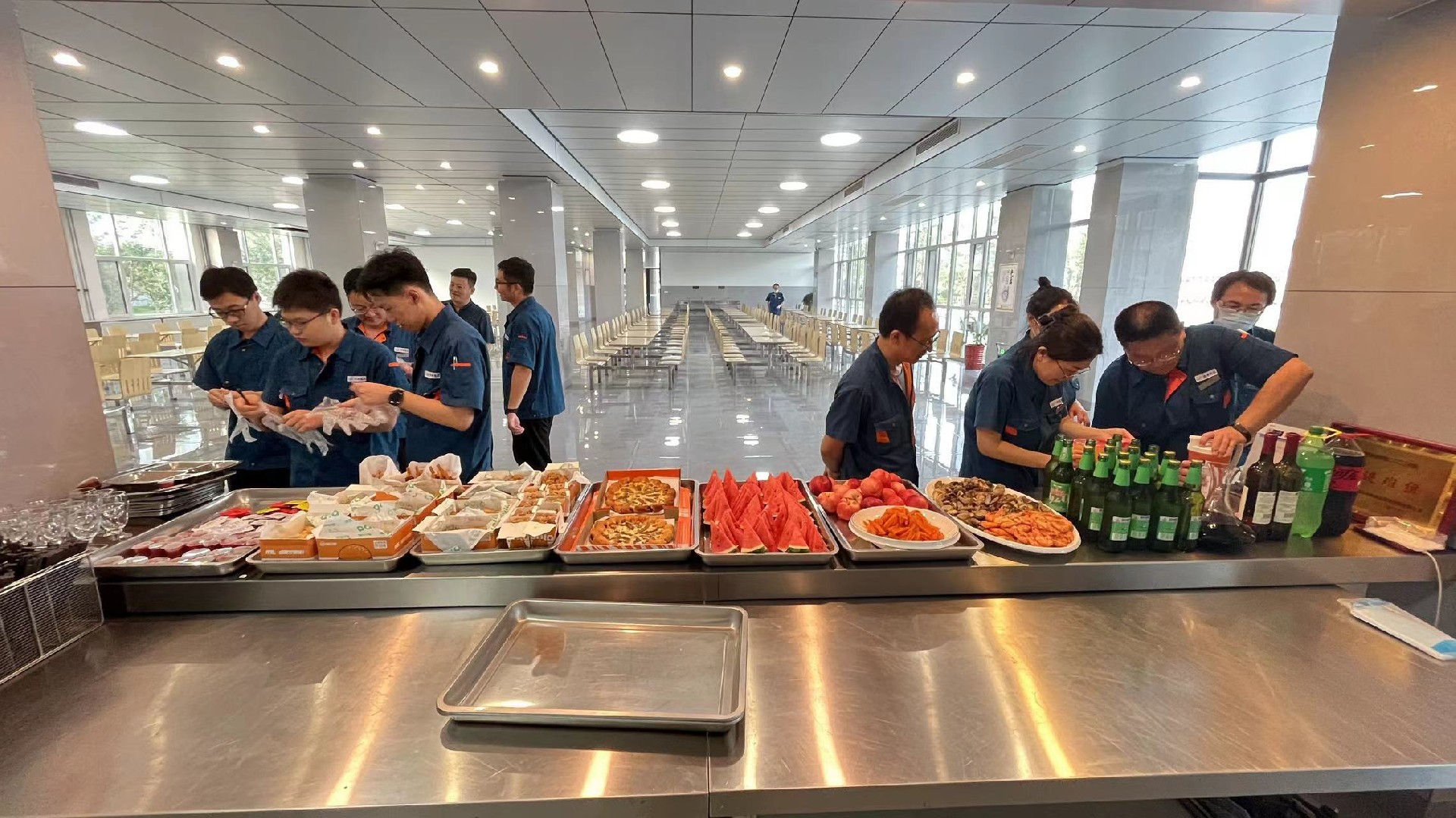 晚上,企業(yè)管理中心為導(dǎo)師及新員工們準(zhǔn)備了豐盛的歡迎冷餐會,按照膠東的習(xí)俗,每逢大事吃團(tuán)圓餃子,大家一起和面,一起拌餡,一起動手包水餃。師傅們紛紛對徒弟表示:“吃了水餃,咱們就是一家人了,好好干。”師傅徒弟和公司領(lǐng)導(dǎo)相對而坐,開懷暢飲,暢所欲言,自己包的餃子格外的香。