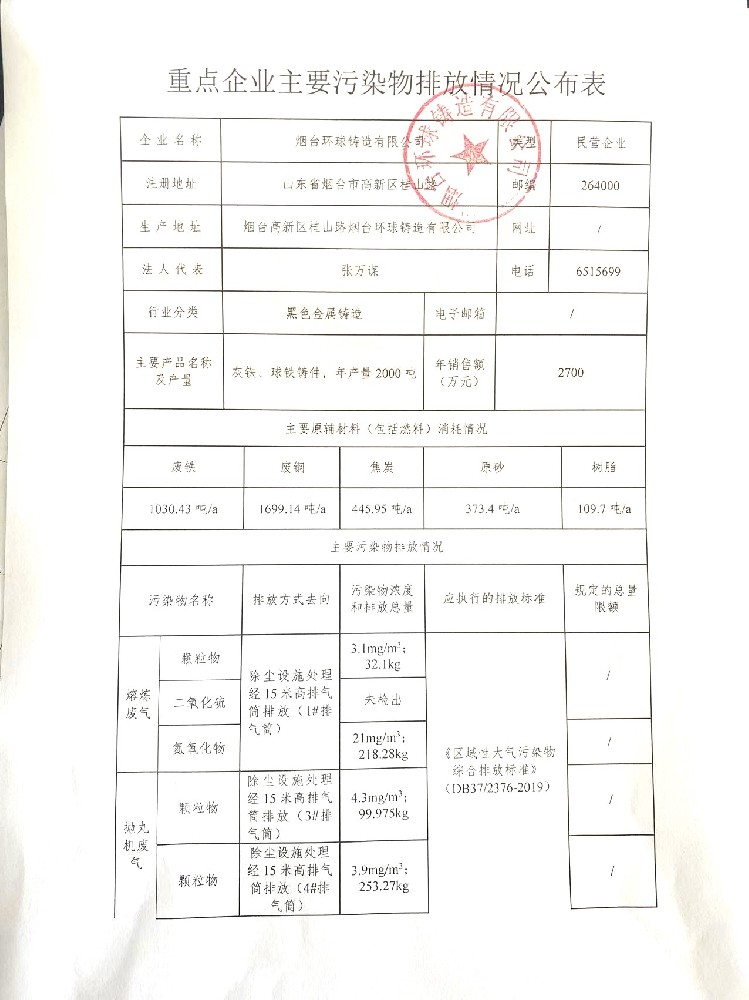 重點企業(yè)主要污染物排放情況公布表